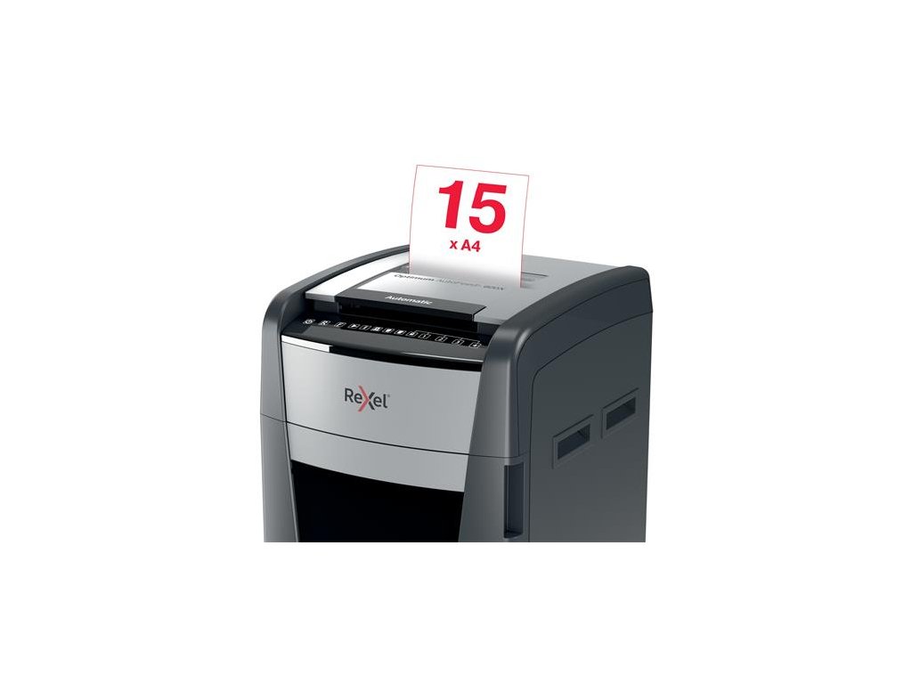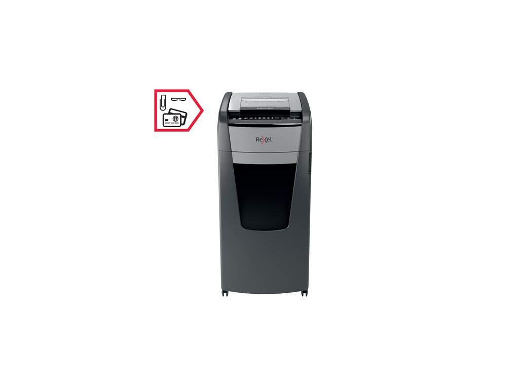 automatický skartovač na osobné a kancelárske použitie vhodné na ničenie bankových kariet, sponiek technológia prito zaseknutiu dotykový ovládací panel so zámkom pomocou PIN kódu detekcia saturácie infračervenej nádrže výrez: 4x36 mm konfety úroveň bezpečnosti: P-4 automatický podávač dokáťe zničiť až 600 listov (80g) kapacita 15 listov cez otvor pre ručné podávanie hlučnosť: 55dBA nepretržitá prevádzková doba: 240 minút prepne do režimu spánku po 3 minútach nečinnosti objem na odpad: 110 litrov vysúvacia nádoba na odpad valčekové kolesá 2 ročná záruka na zariadenie 2 ročná záruka na sekáč Značka: REXEL Výrobca: Esselte Kft. Adresa: 1139 Budapest, Lomb u. 37-39. A ép. II. 8., Hungary Web: https://www.accobrands.com/brands/ Email: hungarymarketing@acco.comDodatočné parametre