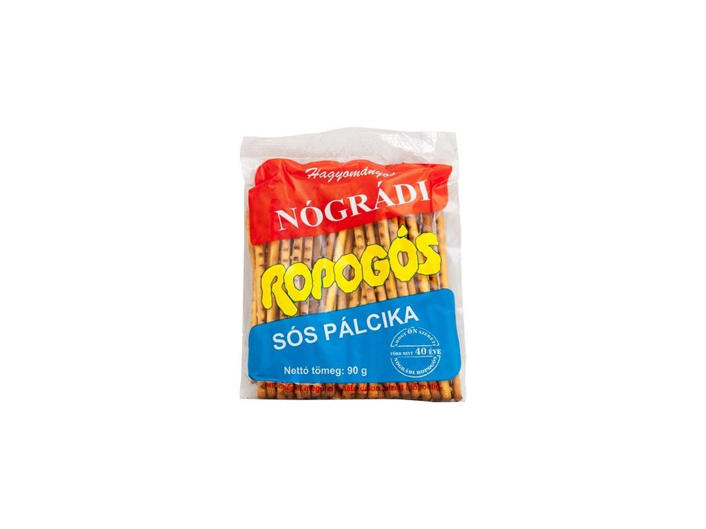 Nógrádi chrumkavé slané tyčinky – pre milovníkov tradičných chutí. Zloženie: pšeničná múka, margarín na pečenie (rastlinné oleje a tuky: slnečnicový olej, palmový olej; pitná voda, emulgátor: mono- a diglyceridy mastných kyselín; jedlá soľ, regulátor kyslosti: kyselina citrónová; farbivo: beta-karotén; arómy), rafinovaný slnečnicový jedlý olej, cukor, kuchynská soľ (2 %), mlieko, droždie, voda, leštiaca látka (hydroxid sodný).Dodatočné parametre