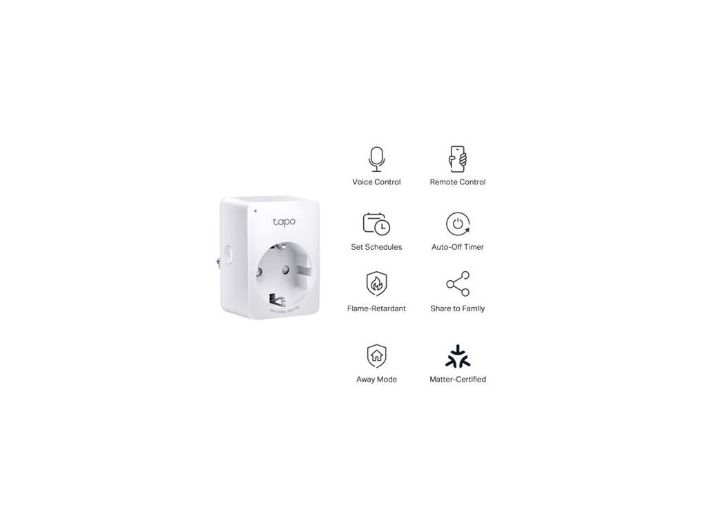 Ovládajte pripojené zariadenia pomocou mobilnej aplikácie Tapo Prednastavte si plán automatickej správy zariadení Vytvorte časové plány pre pripojenú elektroniku Kompatibilná s Amazon Alexa alebo Google Assistant Režim v neprítomnosti Kompaktné rozmery, vďaka ktorým neblokuje susedné zásuvky Jednoduché nastavenie a používanie Nie je potrebný žiadny rozbočovačDodatočné parametre