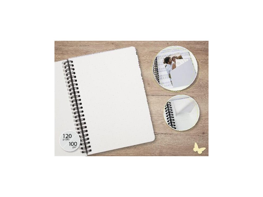 Špirálový zošit s tvrdou obálkou, s motívom Ginko -matný motív -čierna špirálová väzba -mikroperforované listy -120 bodkovaných strán -100 g biely papier -vrecko na zadnej stane obalu -FSC certifikát -vegánsky produktZnačka: SIGEL