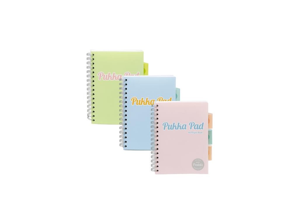 Špirálový zošit, A5, linkovaný, 100 listov, PUKKA PAD "Pastel project book", mix farieb