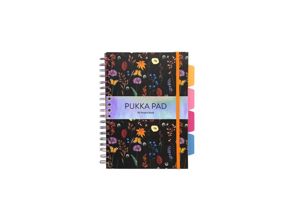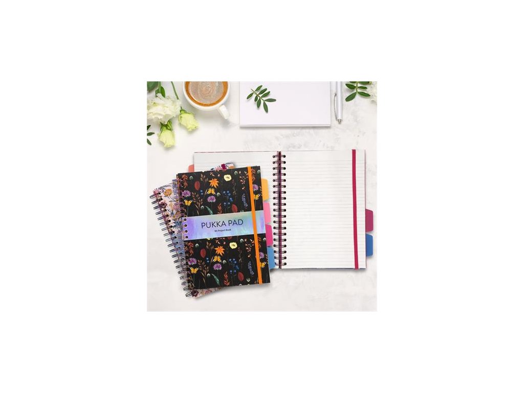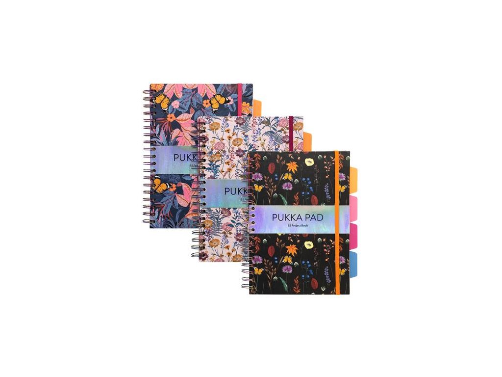 Špirálový zošit, B5, linajkový, 100 listov, PUKKA PAD "Project Book Bloom", rôzne vzory