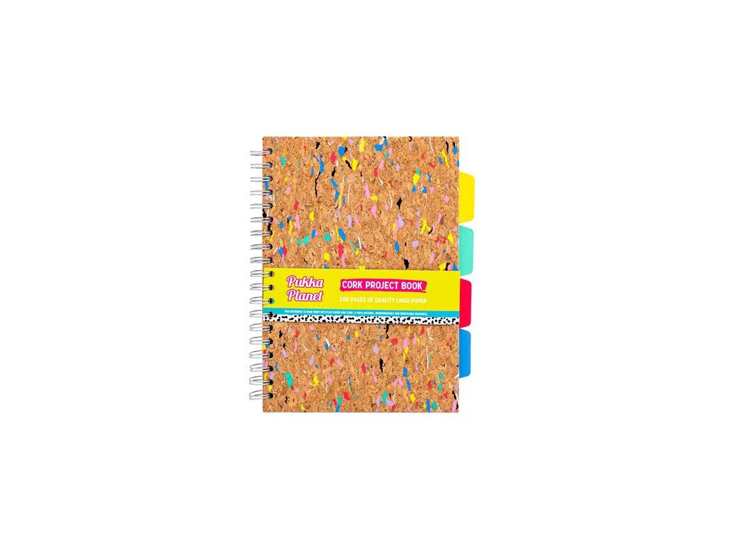 Špirálový zošit, B5, linajkový, s rozraďovačom, 100 listov, PUKKA PADS "Planet Cork Project Book", korkový