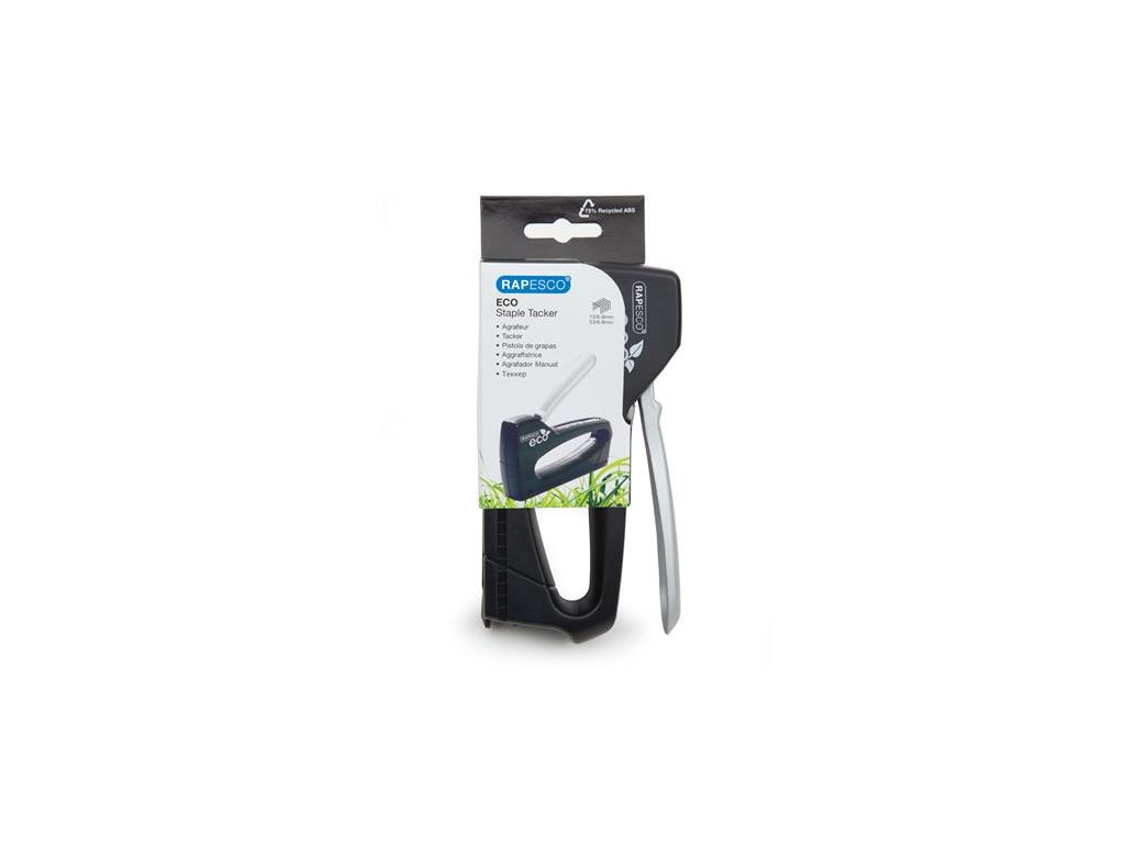 - ručná sponkovacia pištoľ - plastové telo z recyklovaného plastu, kovové časti - zatvárateľné sponkovacie rameno - popisovateľná menovka - zospodu dopĺňateľná - indikátor stavu zásobníka spôn - spinky: 13/4-8, 53/4-8 - plnené: nie - ploché zošívanie: nie - znížené vynaloženie sily: nie - zabudovaná rozošívačka: nie - nástenkové zošívanie: nie - otvorené zošívanie: nie - farba: čierna - rozmery: 158 x 26 mm - 3 ročná záruka Značka: RAPESCO Výrobca: Rapesco-Tacwise BV Adresa: Kraijenhoffstraat, 137A, 1018RG Amsterdam, Netherlands Web: www.rapesco.com Email: support@rapesco-tacwise.nlDodatočné parametre