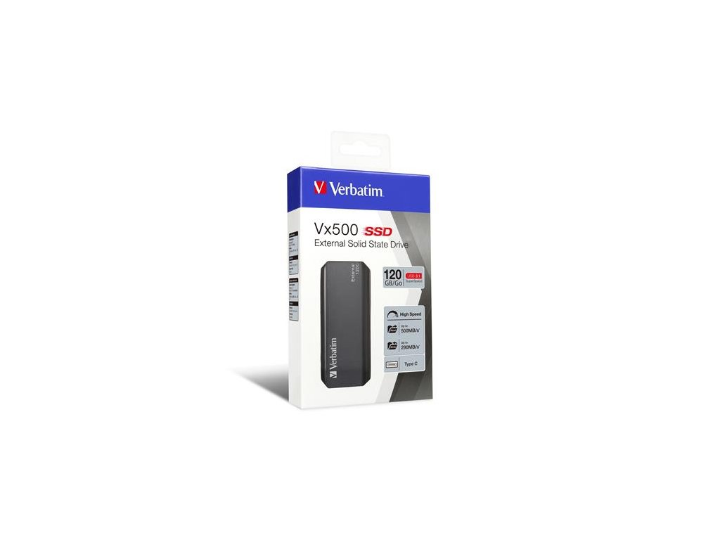 SSD (externá pamäť) 120 GB, USB 3.2 Gen2, VERBATIM "Vx500", sivá