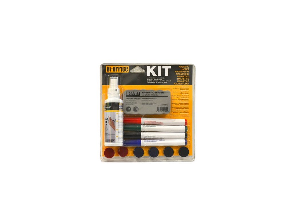 k magnetickým bielym tabuliam, balenie obsahuje: 6 ks magnetiek, čistiacu tekutinu (125 ml), magnetickú stierku, 4 popisovačeDodatočné parametre
