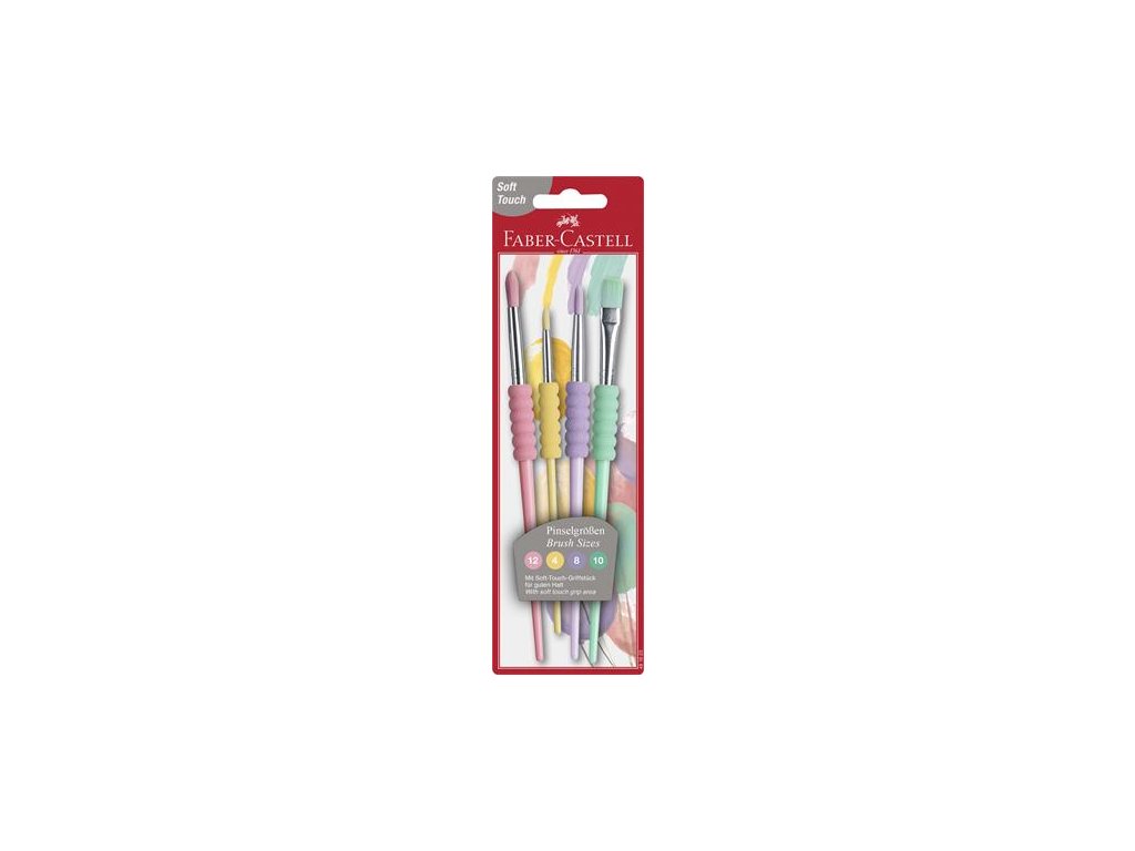 Penová rukoväť v pastelových farbách pre pohodlné uchopenie - jemný, syntetický vlas - okrúhle: no. 4-8-12 - ploché: no. 12 Značka: FABER-CASTELL Výrobca: A.W. Faber-Castell Vertrieb GmbH Adresa: Germany, 90546 Stein Nürnberger str.2. Web: www.faber-castell.com Email: info@faber-castell.de