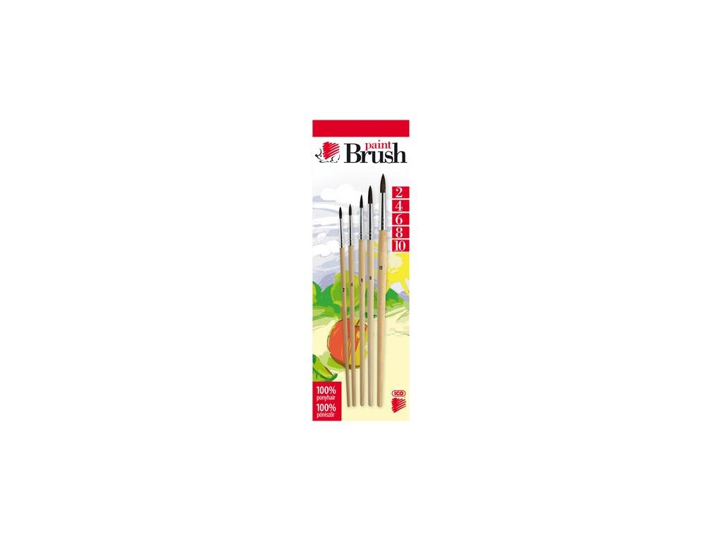 Štetec, sada, okrúhly, no. 2-4-6-8-10, drevený, ICO "Ježko", prírodný