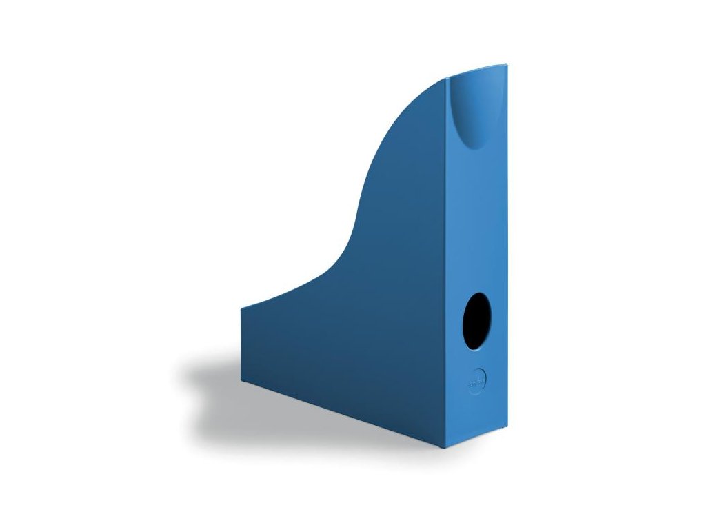 Praktický stojan na časopisy a katalógy z recyklovaného plastu v kvalite Blue Angel, pre formáty A4. S otvorom na prst pre ľahké vyberanie z police. Rozmery: 73 x 306 x 241 mm (Š x V x H). Farba modrá.Dodatočné parametre