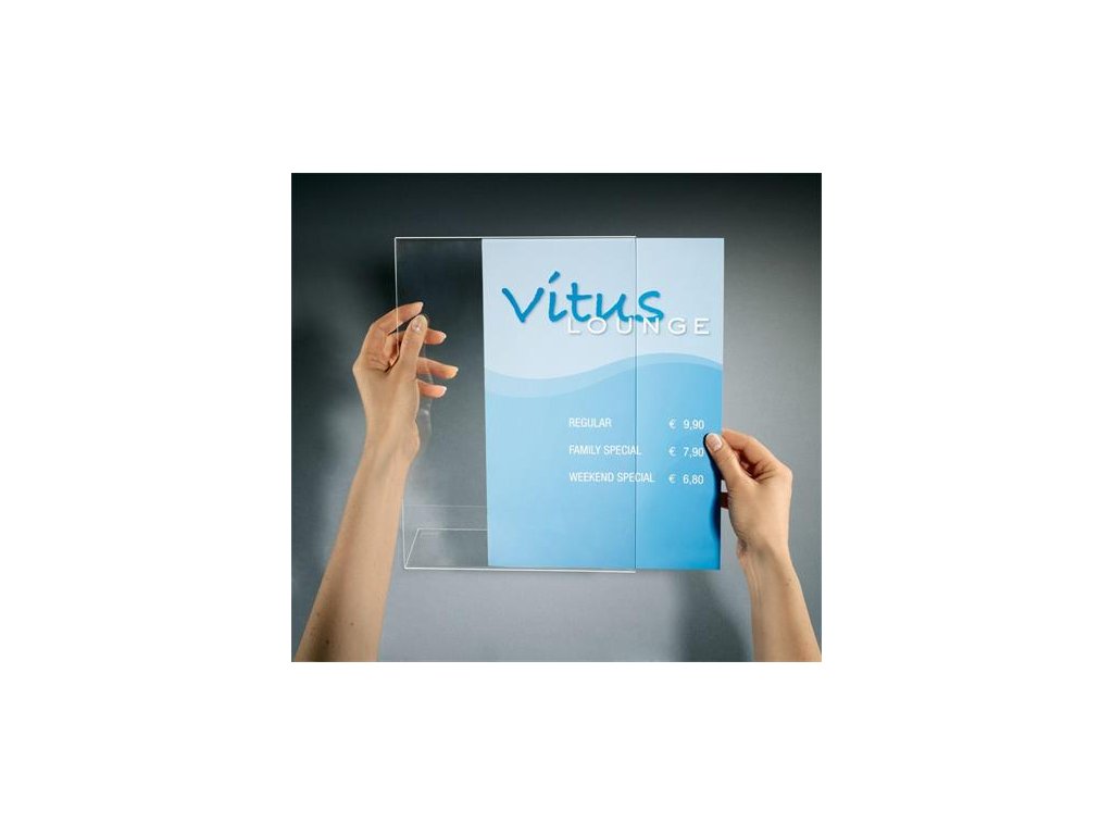 vhodný na jednoduché a príťažlivé prezentovanie letákov,informačných materiálov, naklonený tvar pre lepšiu viditeľnosť, možnosť prezentovania iba 1 strany, priehľadný akrylový materiál, listy sa dajú zasunúť z boku Značka: SIGEL Výrobca: SIGEL GmbH Adresa: Baeumenheimer Strasse 10, 86690 Mertingen, Germany Web: www.sigel-office.com Email: sandra.geist@sigel.deDodatočné parametre