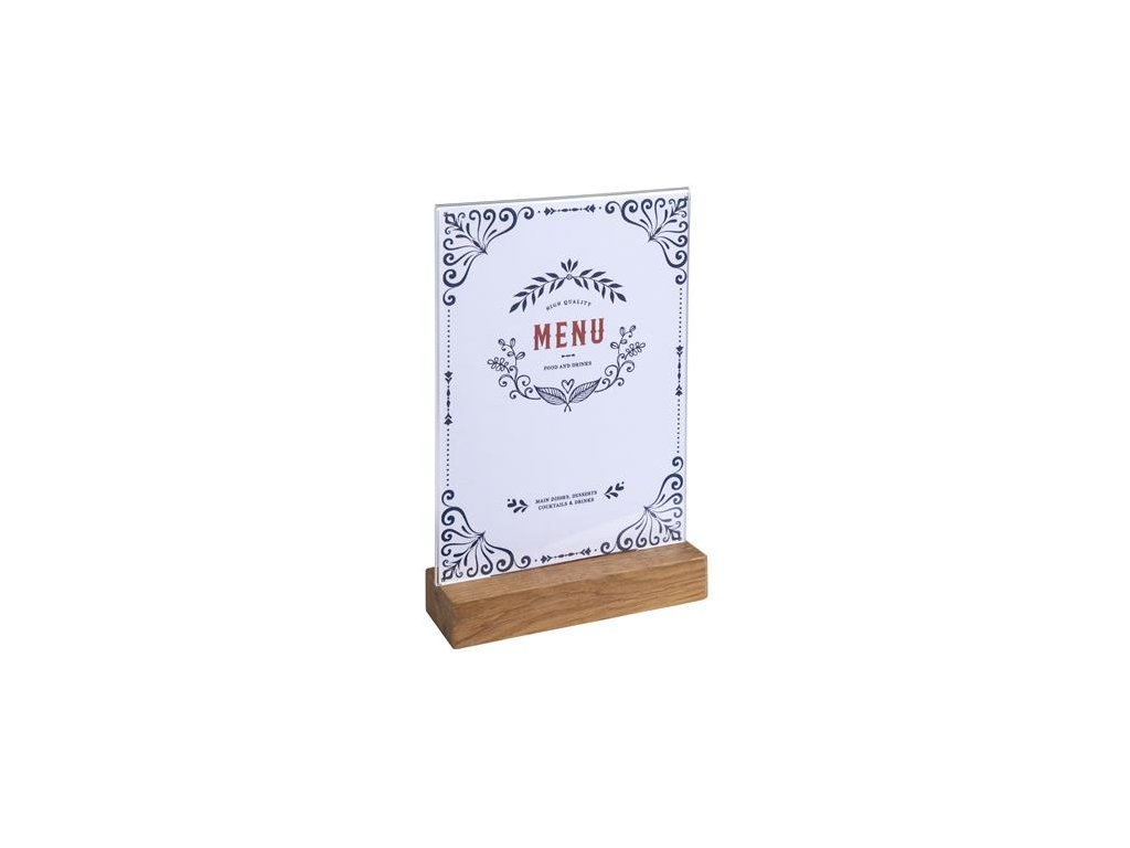 Ideálny na vystavenie fotografií, informácií, jedálnych lístkov či ponúk na stole. -vyrobený z kvalitného akrylu zvislá (stojatá) orientácia -priehľadný -podstavec z dreva -obojstranný -rozmery: 150 x 50 x 240 mm -odolný voči UV žiareniuDodatočné parametre