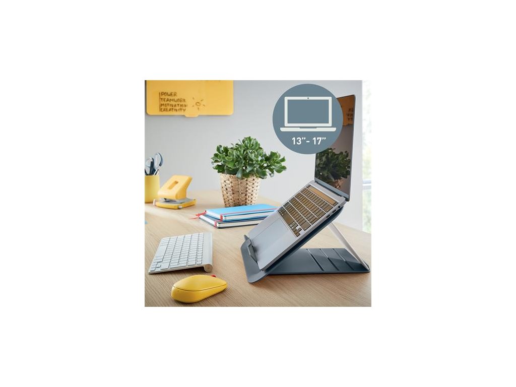 Ergonomicky navrhnutý stojan na notebook pre maximálne pohodlie pri práci Ideálny na prácu posediačky alebo postojačky pri výškovo nastaviteľnom stole, čo ešte viac zlepšuje celkové zdravie a pohodu Nastavte výšku tak, aby bola obrazovka notebooku v ideálnej pozícii na sledovanie Stojan na notebook udržiava batériu a ostatné komponenty v perfektnom stave vďaka chladeniu prúdením vzduchu Rýchle a jednoduché individuálne prispôsobenie stojana na notebook, štyri rôzne výšky na výber Vďaka kompaktnému dizajnu a podstavcu je ideálnym doplnkom každého pracovného stola Keď ho nepoužívate, jednoducho ho zložíte Gumové prvky a integrovaný držiak poskytujú bezpečné a stabilné uchytenie vášho notebooku, aby zostal pevne na svojom mieste Vhodné pre notebooky od 13" do 17" Tento výrobok by sa mal používať s externou klávesnicou a myšou (predáva sa samostatne) Kolekcia Leitz Cosy Ergo spája štýl s prvotriednou kvalitou na vytvorenie zdravého a aktívneho pracovného prostredia Značka: LEITZ Výrobca: Esselte Kft. Adresa: 1139 Budapest, Lomb u. 37-39. A ép. II. 8., Hungary Web: https://www.accobrands.com/brands/ Email: hungarymarketing@acco.comDodatočné parametre
