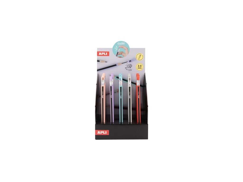Stojan s mechanickými náplňovými ceruzkami, 2 mm, so strúhadlom, ceruzkový dizajn, APLI, v rôznych farbách, 25 ks