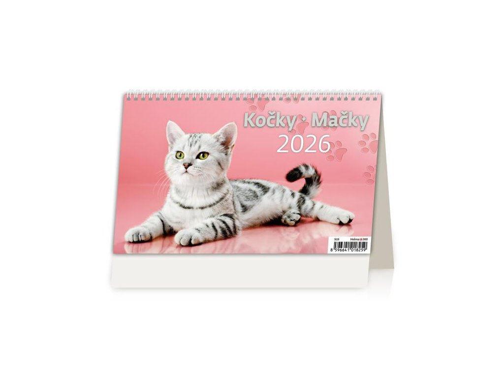 Stolový kalendár riadkový 22,6x13,9 cm - Kočky/Mačky 2026