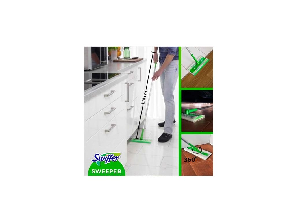 Očakávané riešenie konečne dorazilo: jeden nástroj na zametanie a umývanie podláh.Zachytáva a uzatvára prach a chlpy. 1 ks metla + 8 suchých podlahových utierok + 3 mokré podlahové utierky na náhradu. SWIFFER Sweeper s pevnou utierkou a 360° naklonenou hlavou umožňuje ľahký prístup aj pod postele, pohovky alebo skrine.Vynikajúco sa hodí na zber srsti domácich miláčikov.