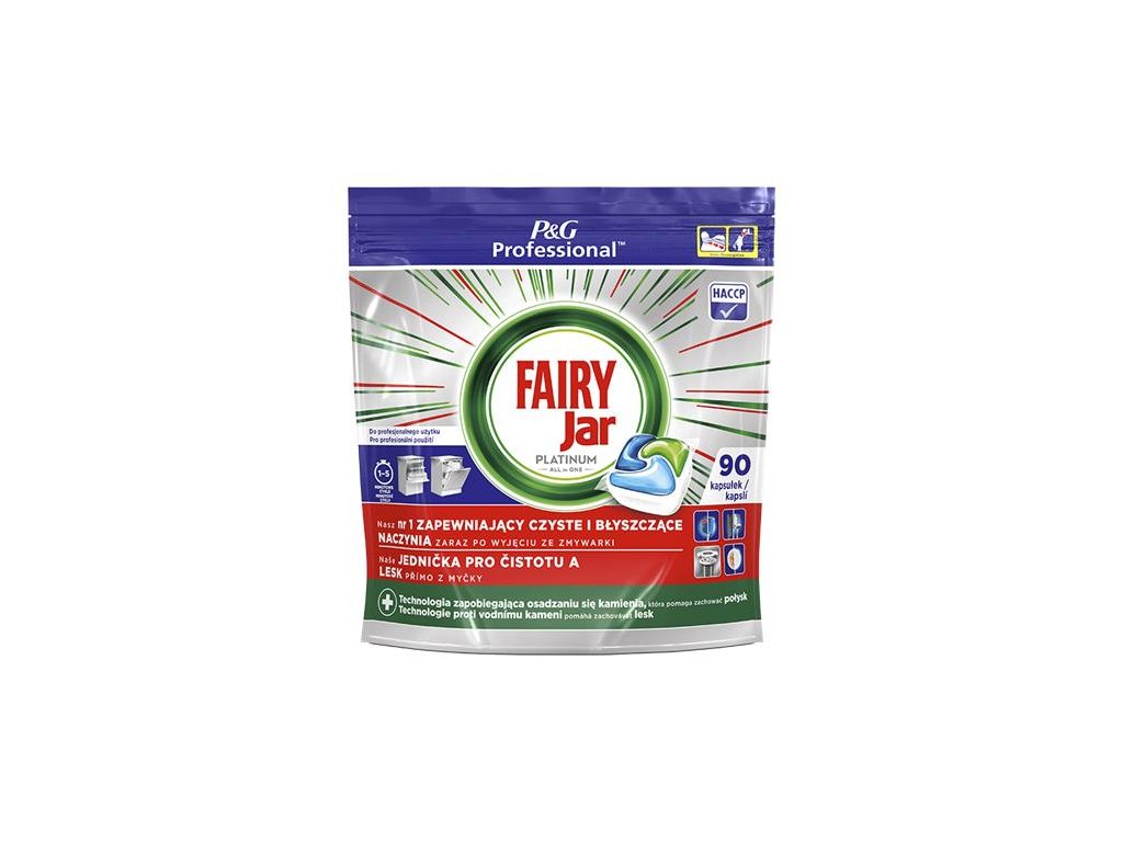 Jar Platinum All in One - jednotlivo balené kapsule na umývanie riadu a pohárov do automatických umývačiek riadu - účinné čistenie aj odolných, zaschnutých škvŕn (napr. škvrny od rúžu, kávy alebo čaju) - s leštidlom pre bezchybný lesk a rýchle výsledky - so soľou na zmäkčovanie vody, ktorá pomáha predchádzať tvorbe vodného kameňa - vyčistí filter a zanechá za sebou čistú umývačku riadu - rýchle rozpustenie aj pri krátkom programe (1-5 minút) profesionálnych a priemyselných umývačiek riadu - nie je potrebné žiadne predoplachovanie ani následné utieranie - vyhovuje predpisom HACCP - opakovane použiteľné vrecko Balenie: 90 ks/balDodatočné parametre