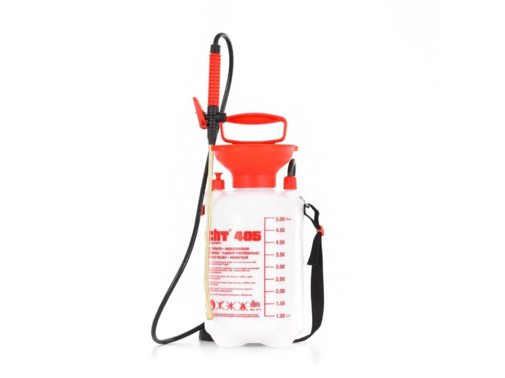 Tlakový ručný postrekovač HECHT 405 - 1ks Ručný tlakový postrekovač s pretlakovým ventilom s nádobou s objemom 5 l. Vďaka nastaviteľnej tryske je aplikácia spreja presná. Je vhodný ako na ošetrenie jednotlivých rastlín, tak aj na aplikáciu na menšie plochy. Parametre: Typ pohonu: Manuálny Objem: nádrže 5 l Max. tlak: 3 bary Dĺžka striekacej rúrky: 150 cm Hmotnosť: 1,3 kg Cena je za 1ksDodatočné parametre