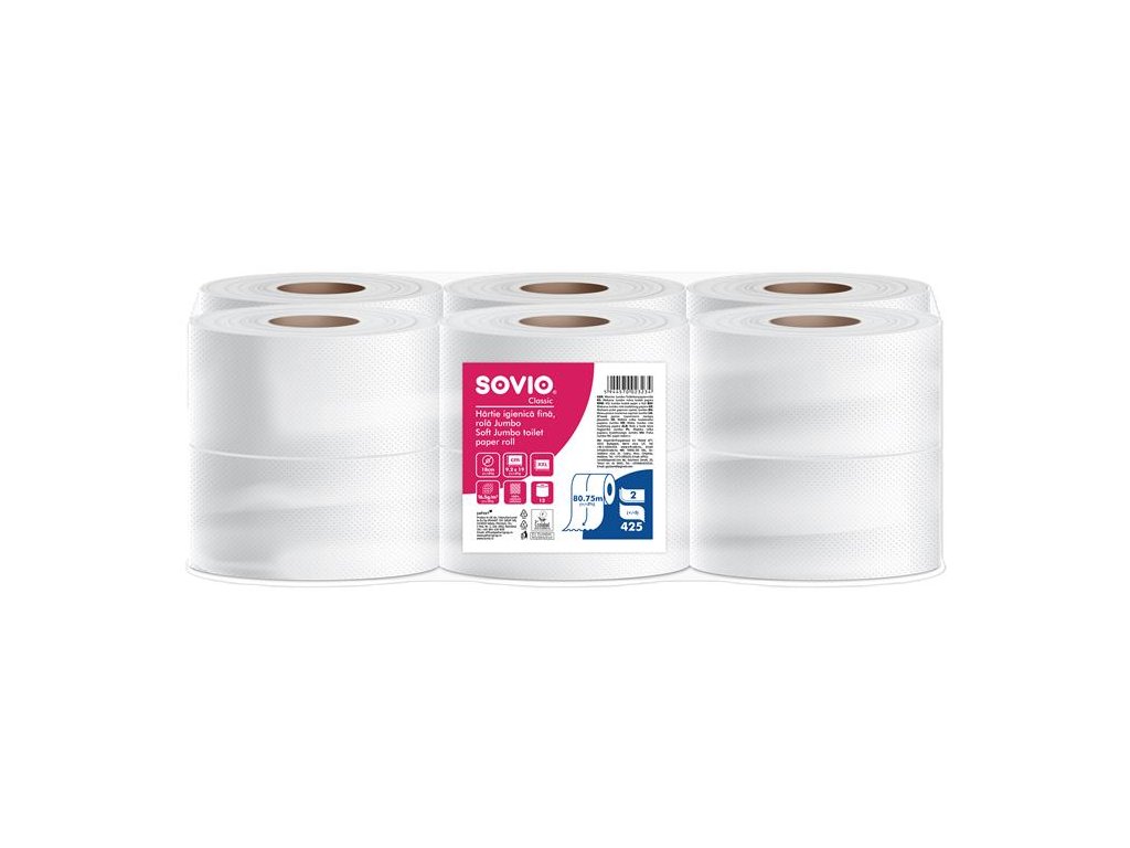 Sovio toaletný papier vďaka veľkému baleniu odporúčame do priestorov so strednou a vysokou návštevnosťou, ako sú HoReCa, fabriky, nákupné centrá, kancelárie, kaderníctva/kozmetické salóny, lekárske ordinácie a kliniky, dopravné zariadenia a verejné inštitúcie. Na jednom kotúči je omnoho viac papiera než na bežných rolkách, takže je potrebné ich vymieňať menej často.