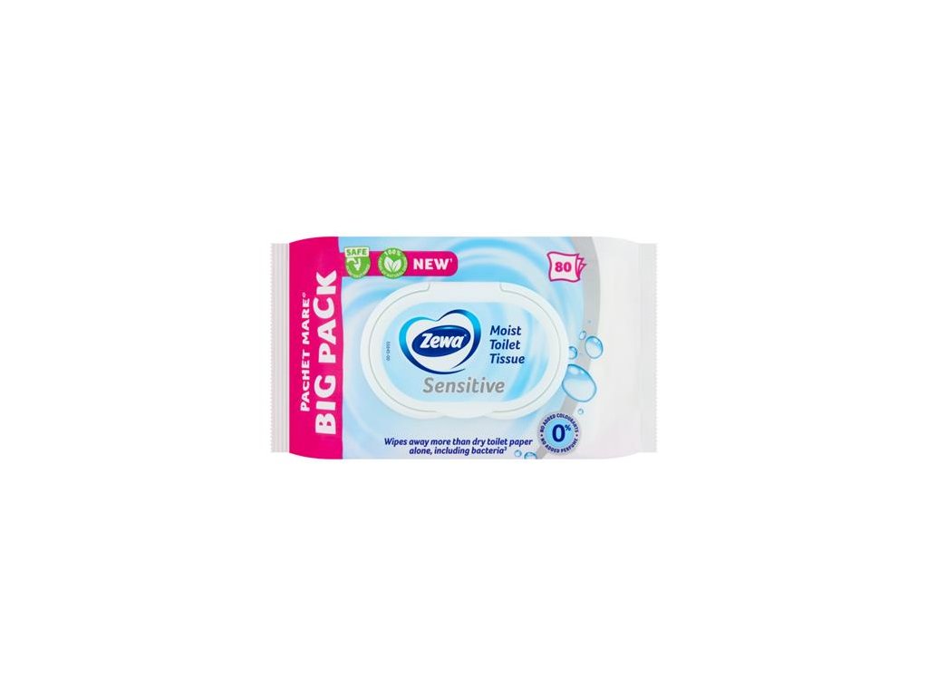 Vlhčený toaletný papier Zewa je teraz dostupný aj vo veľkom balení 80 listov. S uzatvárateľným vekom, aby si obliečky udržali vlhkosť po dlhú dobu. Vlhkým toaletným papierom Zewa poskytujeme dôkladnú starostlivosť o intímne miesta nášho tela. Používa sa spolu so suchým toaletným papierom, odstraňuje viac baktérií ako samotný tradičný toaletný papier. Toaletný papier je optimálne navlhčený, aby sa dôkladne čistil, no nezanechával pocit vlhkosti. Mokrý toaletný papier Zewa sa teraz po spláchnutí toalety rozpúšťa dvakrát rýchlejšie, vďaka čomu je rovnako bezpečný ako suchý toaletný papier.Dodatočné parametre