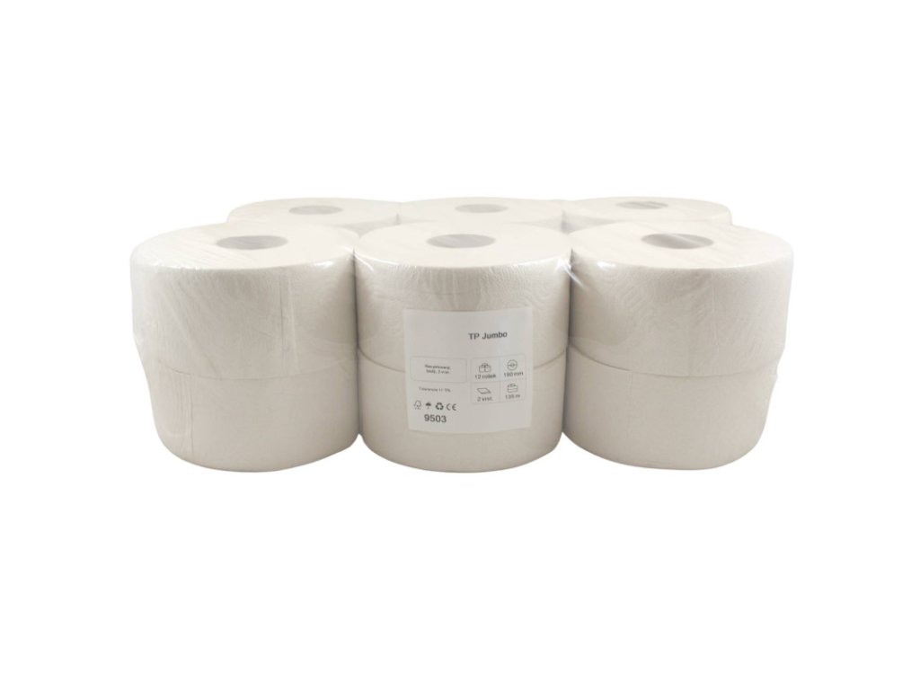 Toaletný papier JUMBO Ø 19 cm, 135 m 2vrst.70%belosť (12ks) Toaletný papier recyklovaný Ø 19 cm, 2 vrstvový, 70% belosť, 135 m, Cena za balenie 12 ksDodatočné parametre