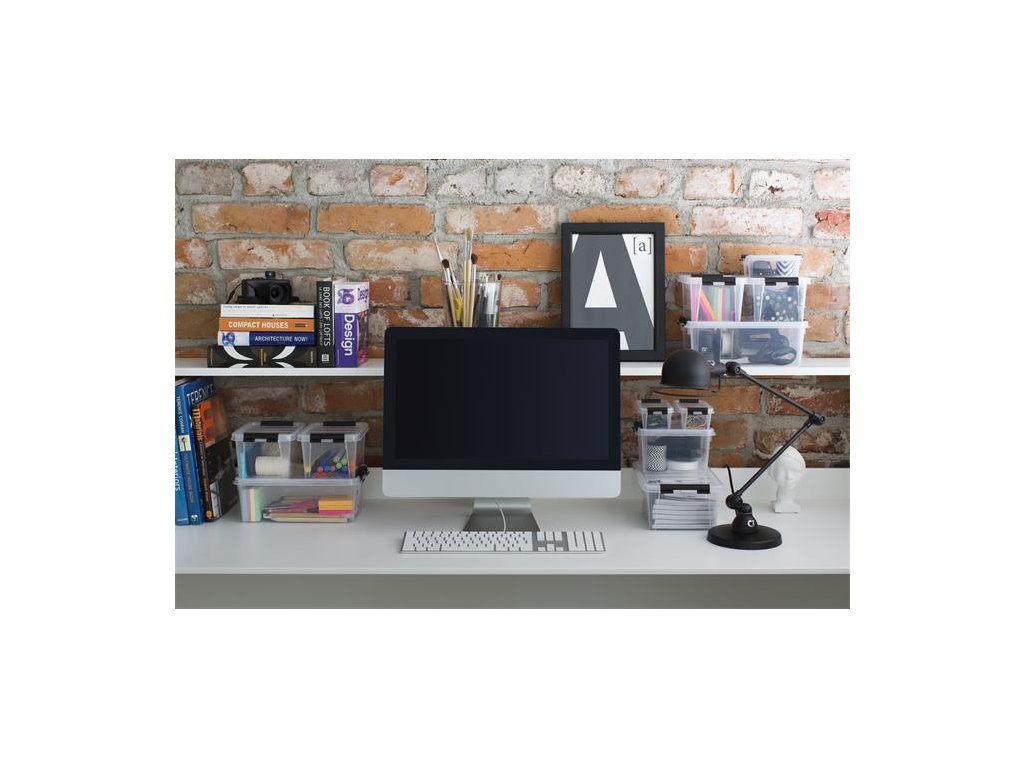 Úložný box, plastový, 0,3 l, čierne úchytky, SMARTSTORE "Classic 0,5", priehľadný