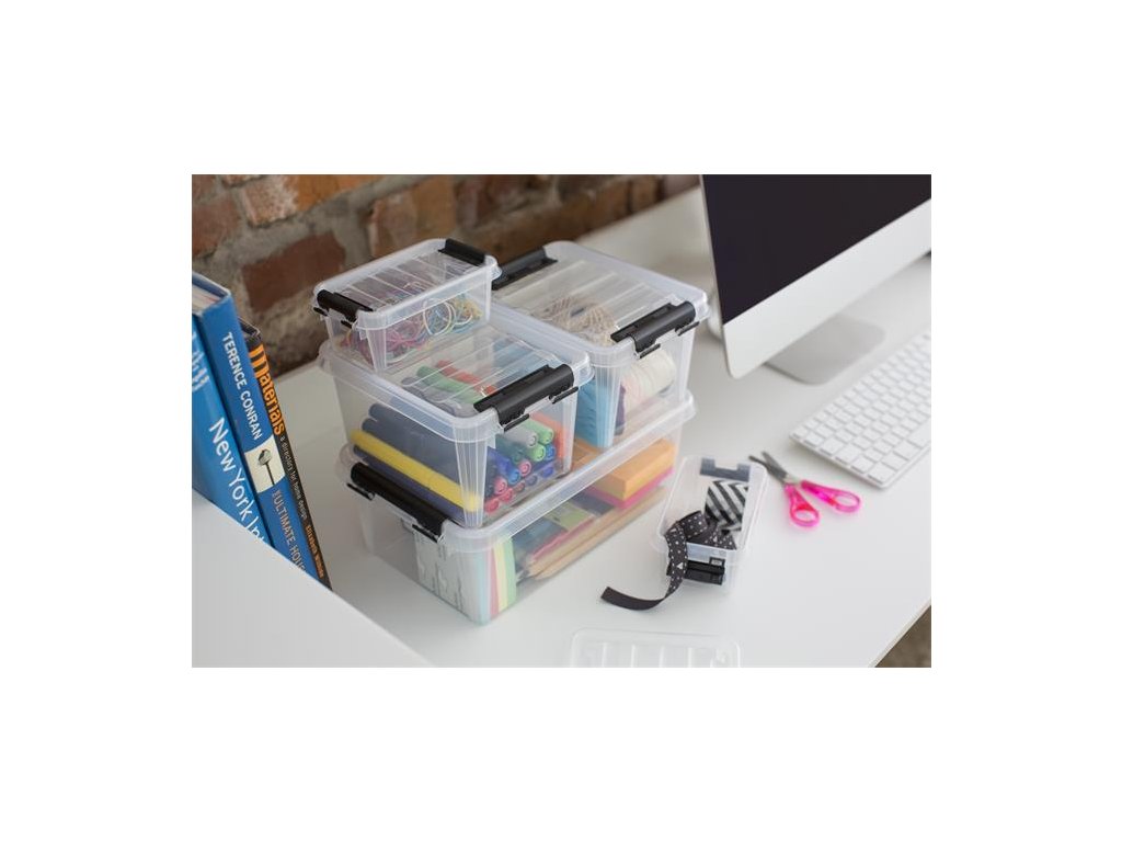 Úložný box, plastový, 1,5 l, čierne úchytky, SMARTSTORE "Classic 1,5", priehľadný