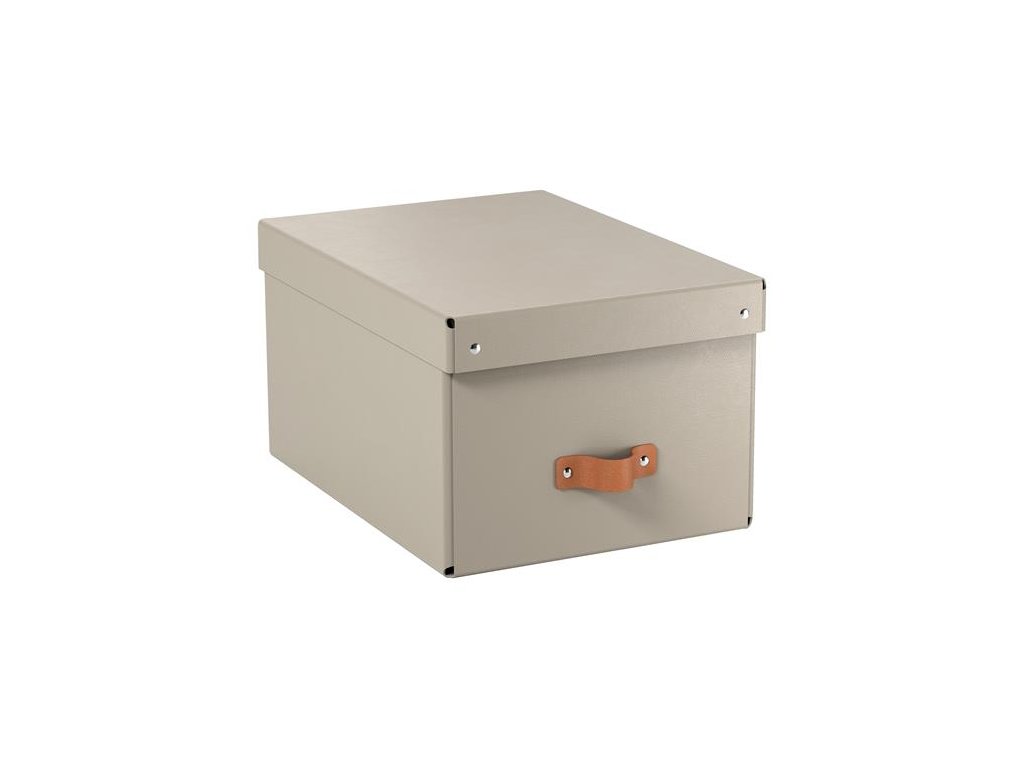Štýlová kožená rukoväť uľahčuje vyberanie kartónových úložných boxov z políc, úložných či šatníkov.