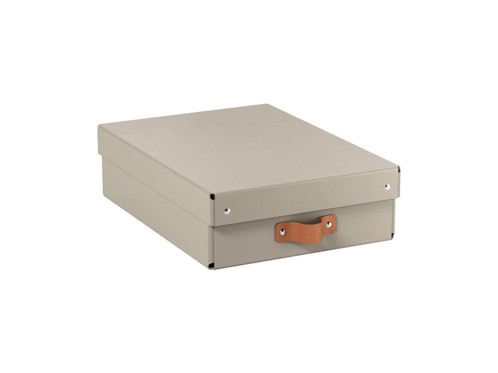 Štýlová kožená rukoväť uľahčuje vyberanie kartónových úložných boxov z políc, úložných či šatníkov.