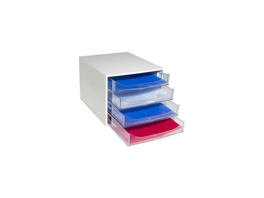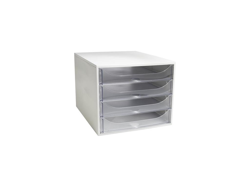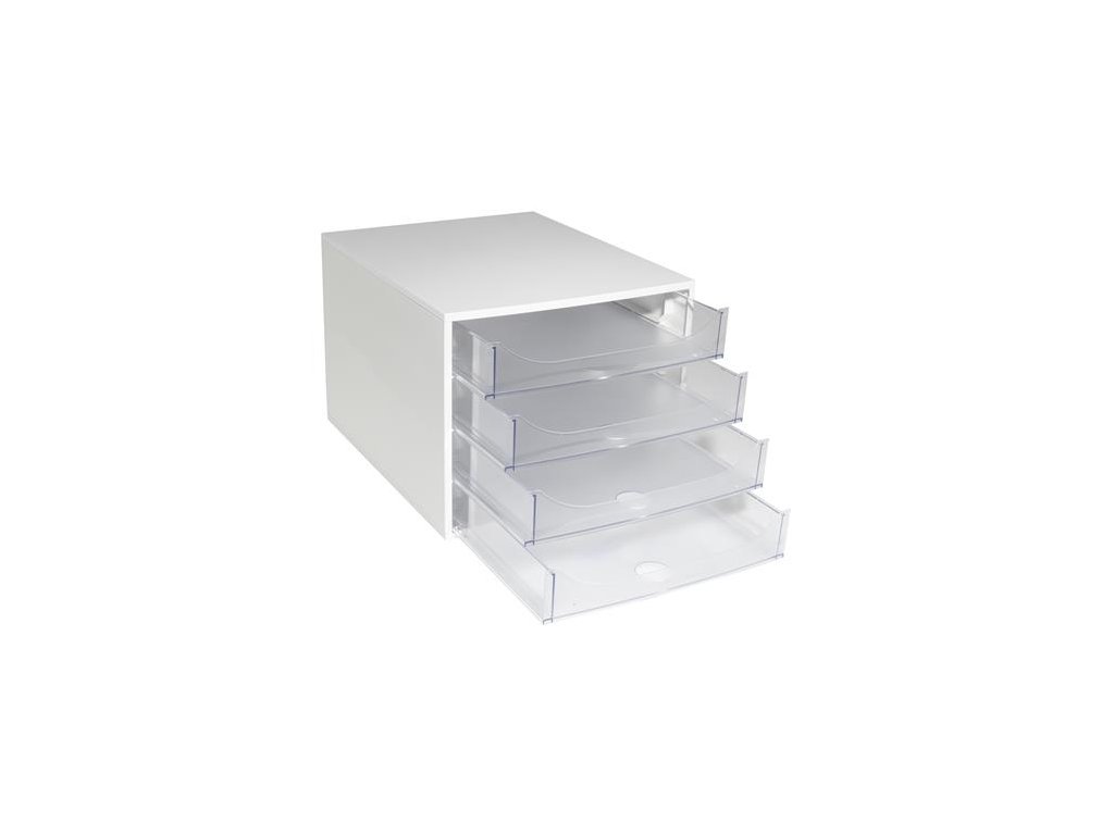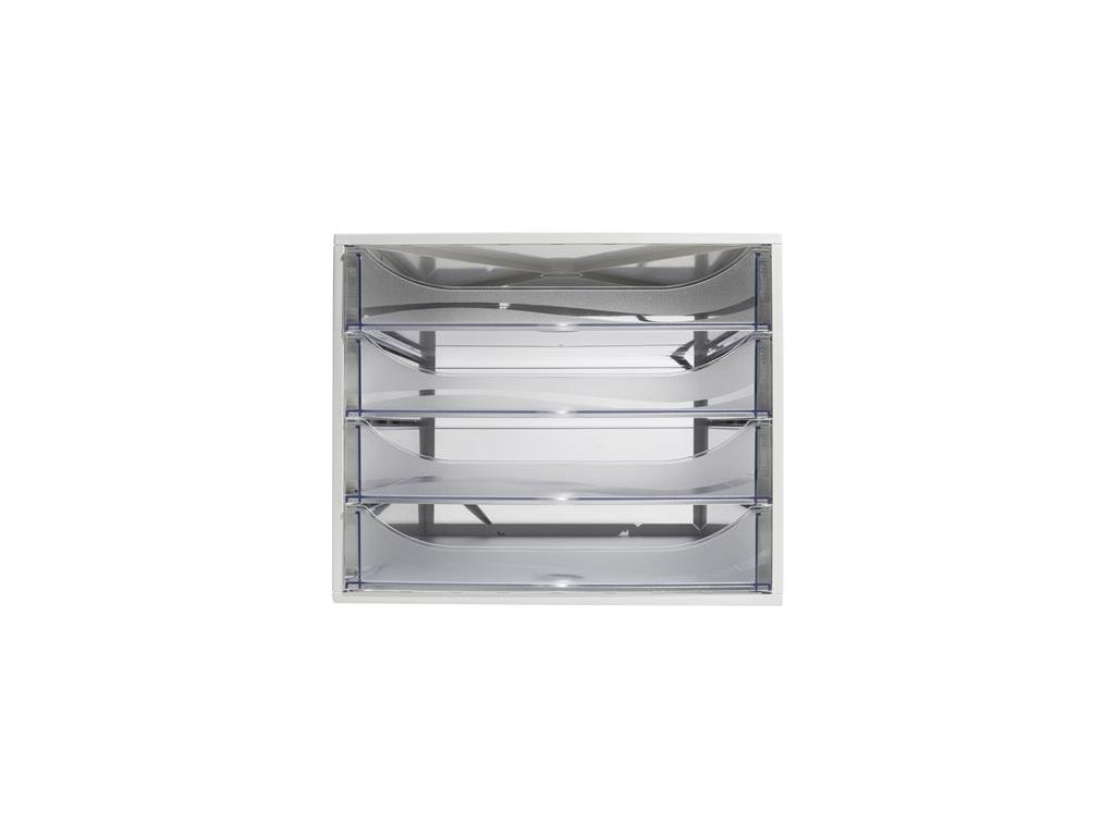 Úložný box na dokumenty, plastový, 4-zásuvkový, EXACOMPTA "Ecobox Office", sivý-priehľadný