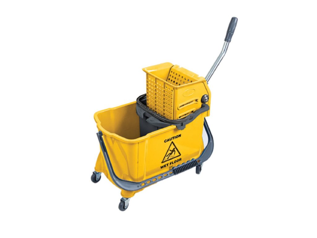 Upratovací vozík KENTUCKY PROFI žltý 24 L + 8L žmýkač Vozík KENTUCKY PROFI pozostáva z dvojkomorového vedra z kvalitného plastu ABS, ktorý sa vyznačuje vysokou odolnosťou proti prasknutiu. Používa čeľusťový lis, ktorého je súčastou 8 litrové vedro na znečistenú vodu.Vďaka kvalitnému lisu je proces žmýkania ľahký. Tento lis pracuje s plochými ako i šnúrkovými mopmi a jeho oceľová rukoväť vám umožňuje bezpečný pojazd s vozíkom. Vhodný pre menšie prevádzky a domácnosti.Dodatočné parametre