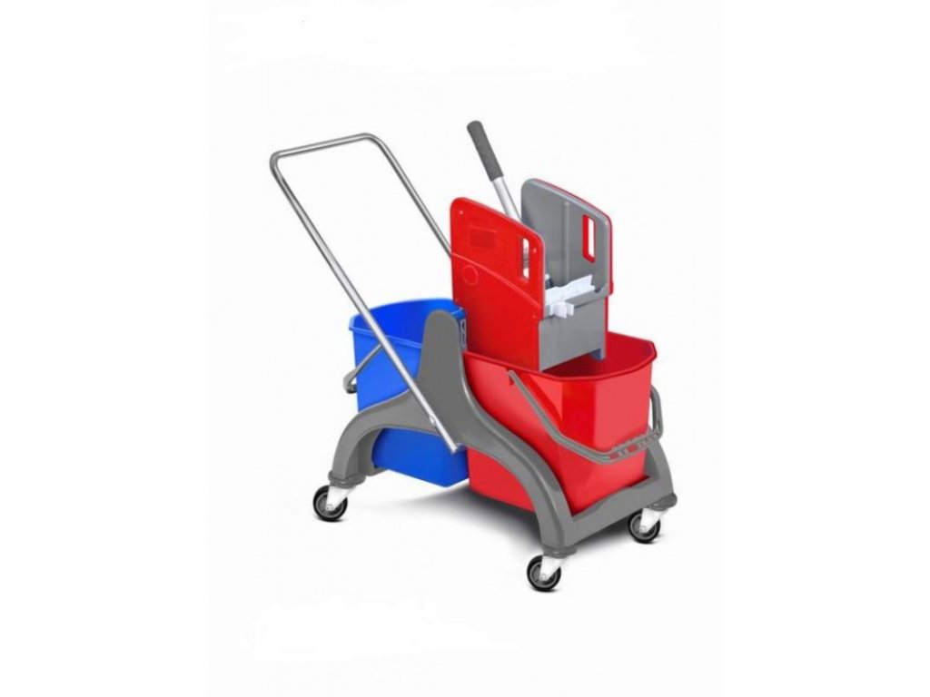 Tento upratovací vozík s dvoma vedrami patrí medzi najobľúbenejšie a najpredávanejšie upratovacie vozíky. Rám vozíka je vyrobený z kvalitného tvrdeného plastu s vysokou odolnosťou voči poškodeniu. Rukoväť vozíka je vyrobená z pevnej chrómovanej kovovej trubky a je na obe strany preklápateľná. Vozík obsahuje 2 ks vedier, ktoré sú farebne rozlíšené s objemom 25 litrov. Obsahuje kvalitný žmýkací lis na žmýkanie mopov. Má 4 otočné kolieska s plastovými chráničmi proti poškodeniu koliesok a stien. Vozík je vhodný na umývanie chodieb, kuchýň, kancelárií, skladov, schodísk, výrobných hál a iných malých a veľkých priestorov... Ideálny pre firmy, úrady, budovy, sklady, hotely, výrobné závody, bytové domy, školy, kancelárie, obchodné domy, nemocnice. Tento upratovací vozík poskytuje vysoký komfort pri upratovaní. Vďaka dostatočnej veľkosti objemu vedier sa v ňom dá rýchlo a ľahko vyžmýkať mop, keďže veľkosť vedie. Poskytuje veľmi dobrú skladovateľnosť a manipuláciu. Príslušenstvo: Konštrukcia tvrdený plast - ŠEDÁ 2 x 25 l vedrá farebne rozlíšené 4 otočné kolieska s plastovými chráničmi proti poškodeniu stien a zariadenia Žmýkač (lis) na žmýkanie mopu Rozmery vozíka: 90x48x80 cm Balenie obsahuje 1 ks vozíka s príslušenstvom.Dodatočné parametre
