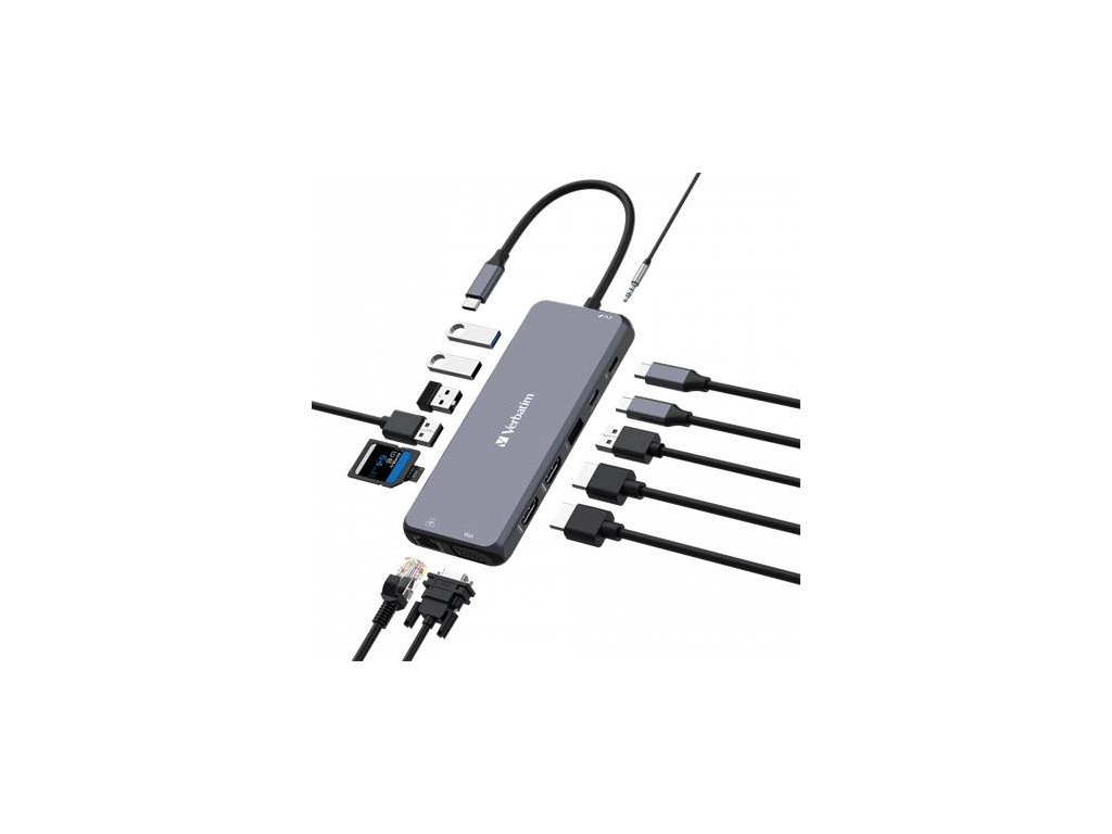 USB HUB, USB-C PD/2xHDMI/VGA/LAN/3xUSB/USB-C/2xUSB 2.0/SD/mSD/3,5jack VERBATIM