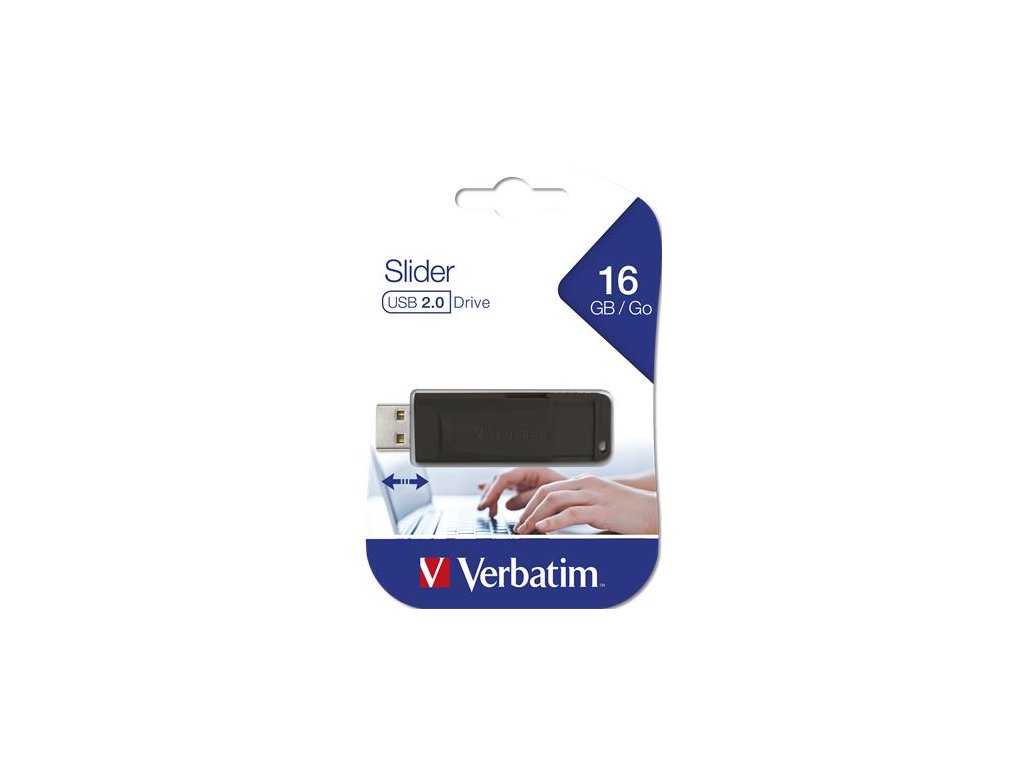 USB kľúč, 16GB, USB 2.0, VERBATIM "Slider", čierny