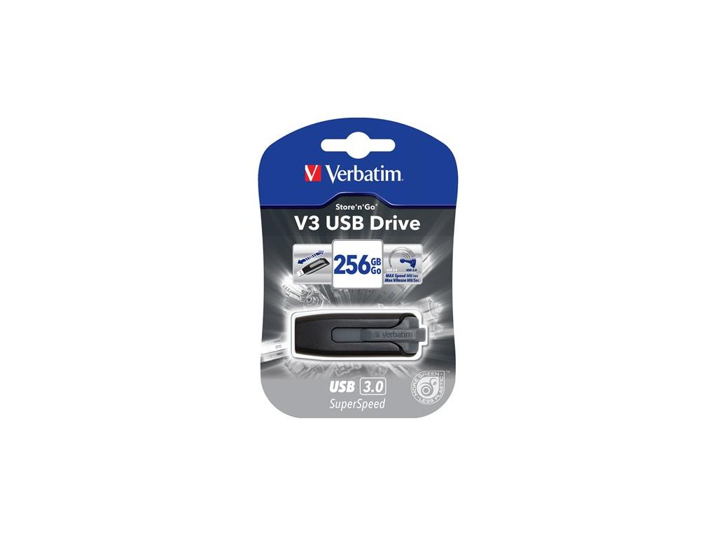 USB kľúč, 256GB, USB 3.2, 80/25 MB/sec, VERBATIM "V3", čierno-sivá