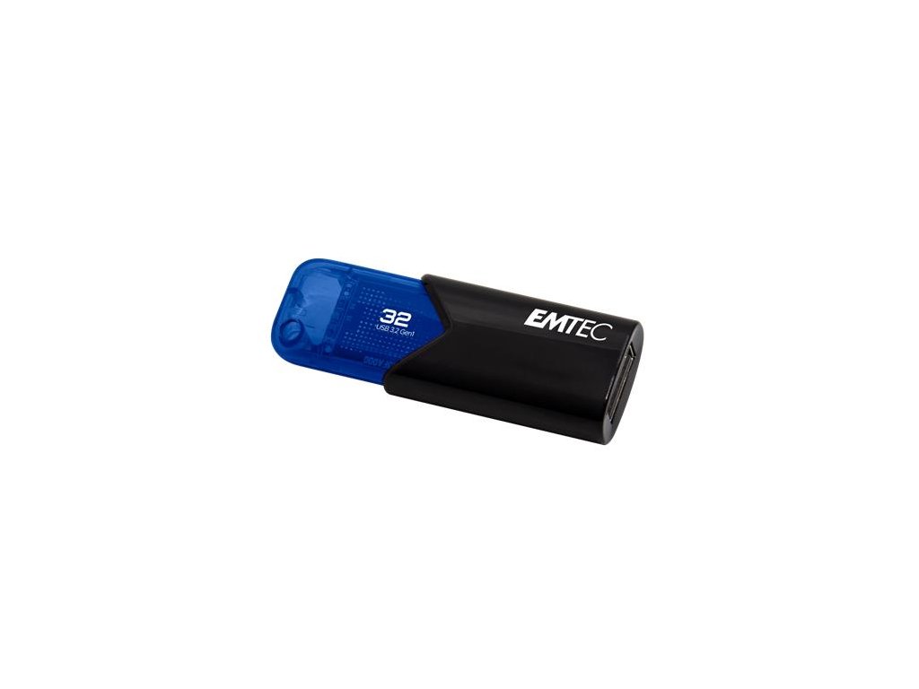 USB kľúč, 32GB, USB 3.2, EMTEC "B110 Click Easy", čierna-modrá