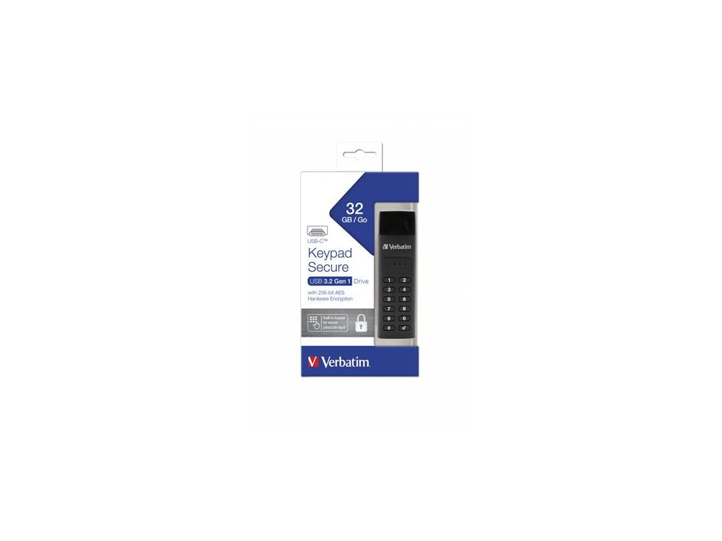 USB kľúč, 32GB, USB-C (USB 3.2), šifrované, 160/130Mb/s, VERBATIM "Keypad Secure"