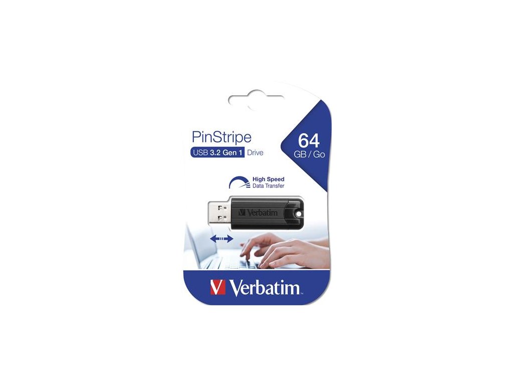 USB kľúč, 64GB, USB 3.2, VERBATIM "Pinstripe", čierna