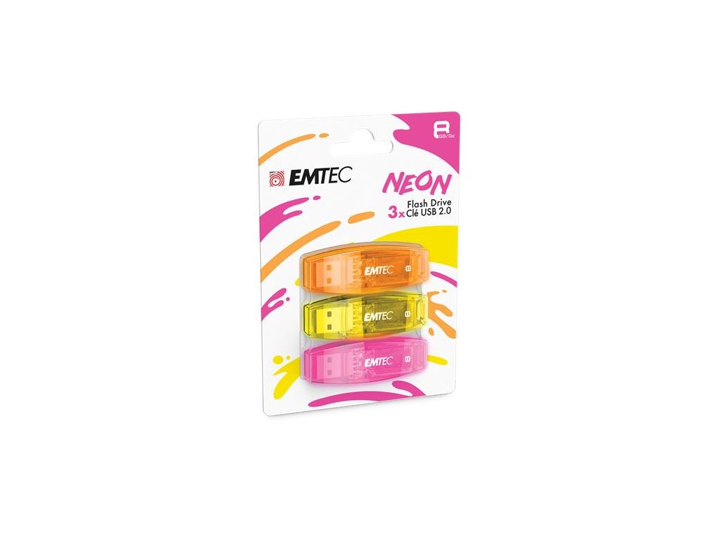 USB kľúč, 8GB, 3 ks, USB 2.0, EMTEC "C410 Neon", oranžová, žltá, ružová
