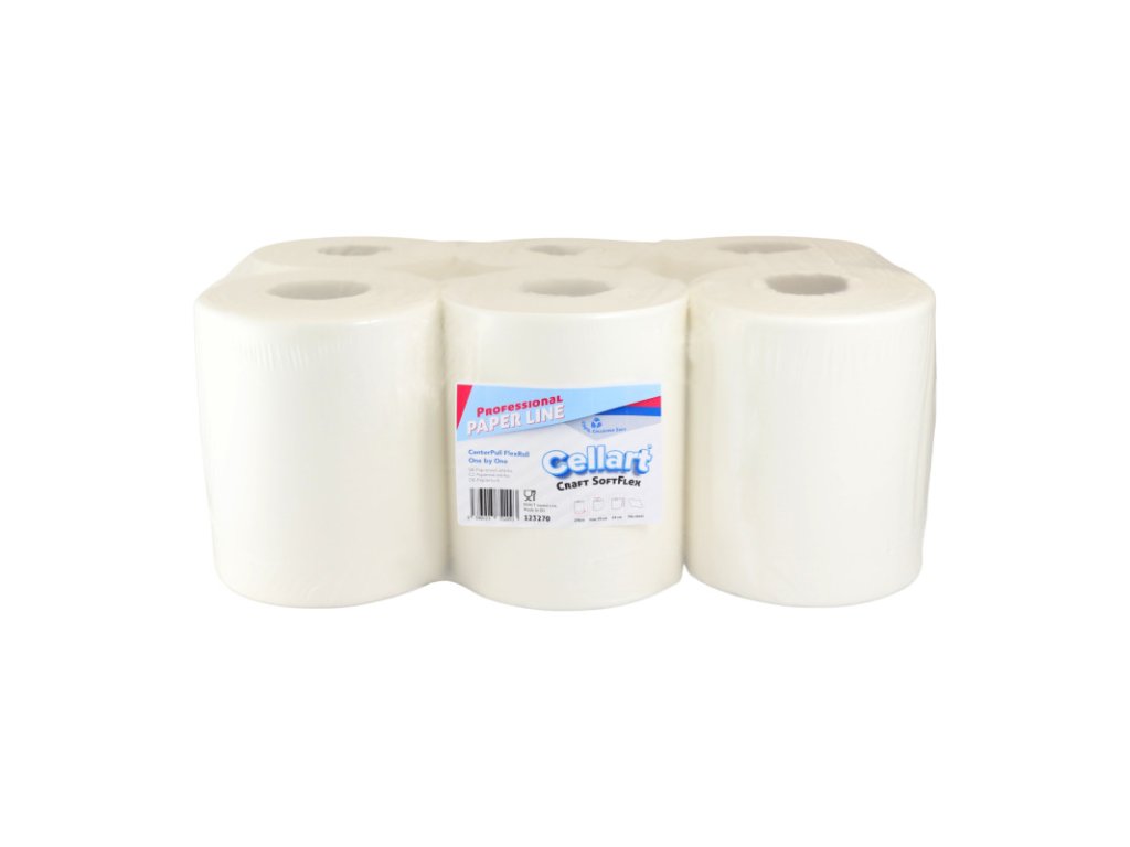 123270 – Utierka CELLART Craft Soft Flex, 270m (6ks) Papierové utierky Soft Flex sú veľmi kvalitné a extra jemné. Utierky sú vyrobené zo 100 % celulózy, na dotyk veľmi príjemné a veľmi dobre savé. Utierka funguje oveľa lepšie v porovnaní s viacvrstvovými uterákmi, ktoré obsahujú lepiacu vrstvu, ktorá znižuje nasiakavosť a robí utierku tvrdou a môže nadmerne zaťažovať zásobník. Nízka prašnosť a mechanická pevnosť ovplyvňujú optimalizáciu spotreby utierok. Utierku je možné vnútorne odvíjať po vytiahnutí stredovej dutinky a pri použití s príslušným dávkovačom je možné útržky dávkovať jednotlivo. Špeciálny typ perforácie listov, zaisťujúci možnosť ich ľahkého roztrhnutia, čím sa zabráni odobratiu ich veľkého množstva naraz. Tento produkt je certifikovaný a bezpečný na použitie na miestach spracovania a prípravy potravín. Počet vrstiev : jednovrstvové Materiál : 100% celulóza Dĺžka kotúča (m) : 270 Šírka kotúča (mm) : 190 Priemer kotúča max (mm) : 190 Počet útržkov (ks) : 794 Balenie : 6 ksDodatočné parametre