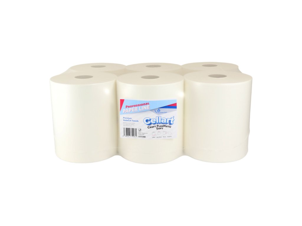 122280 - Utierka CELLART PlusMatic Soft 280, 270m (6ks) Papierové utierky PlusMatic sú veľmi kvalitné a extra jemné. Utierky sú vyrobené zo 100 % celulózy, na dotyk veľmi príjemné a veľmi dobre savé. Utierka funguje oveľa lepšie v porovnaní s viacvrstvovými uterákmi, ktoré obsahujú lepiacu vrstvu, ktorá znižuje nasiakavosť a robí utierku tvrdou a môže nadmerne zaťažovať zásobník. Nízka prašnosť a mechanická pevnosť ovplyvňujú optimalizáciu spotreby utierok. Dlhý kotúč umožňuje výrazne znížiť frekvenciu výmeny utierok v zásobníku. Utierka perfektne funguje s väčšinou automatických dávkovačov obľúbených značiek. Kompatibilná utierka aj do systémových zásobníkov TORK, Merida, Kimberly Clark, Katrin, Lotus a iných s použitím dutinky z rolky s plastovými koncovkami od vášho pôvodného dodávateľa. Tento produkt je certifikovaný a bezpečný na použitie na miestach spracovania a prípravy potravín. Počet vrstiev : jednovrstvové Materiál : 100% celulóza Hmotnosť papiera : 34 g/m2 Hmotnosť kotúča : 1,84 kg Dĺžka kotúča (m) : 270 Šírka kotúča (mm) : 200 Priemer kotúča (mm) : 190 Počet útržkov (ks) : neperforovaná Cena za balenie : 6 ksDodatočné parametre