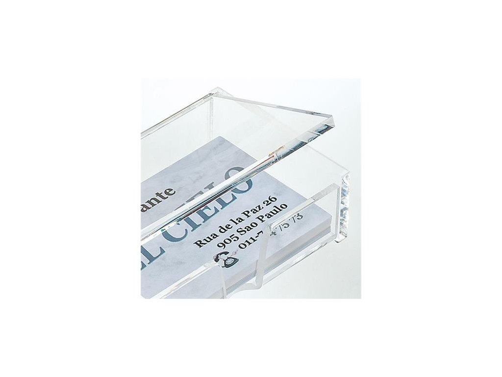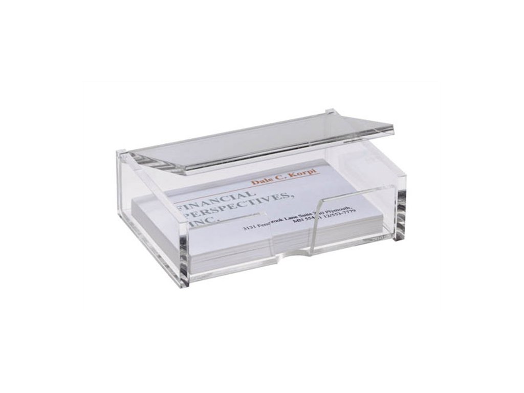 - priehľadný akrylový materiál - uzatvárateľné viečko - na 80 ks vizitiek s max. rozmermi 56x86 mm Značka: SIGEL Výrobca: SIGEL GmbH Adresa: Baeumenheimer Strasse 10, 86690 Mertingen, Germany Web: www.sigel-office.com Email: sandra.geist@sigel.deDodatočné parametre