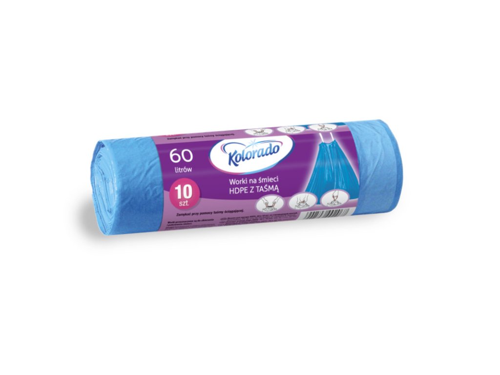 Vrecia do košov 60L zaťahovacie Kolorado 10 ks Vrecia do košov z HDPE fólie so špeciálnou šnúrkou pre ľahké zaťahovanie. Veľkosť: 60l, 67x58 cmDodatočné parametre