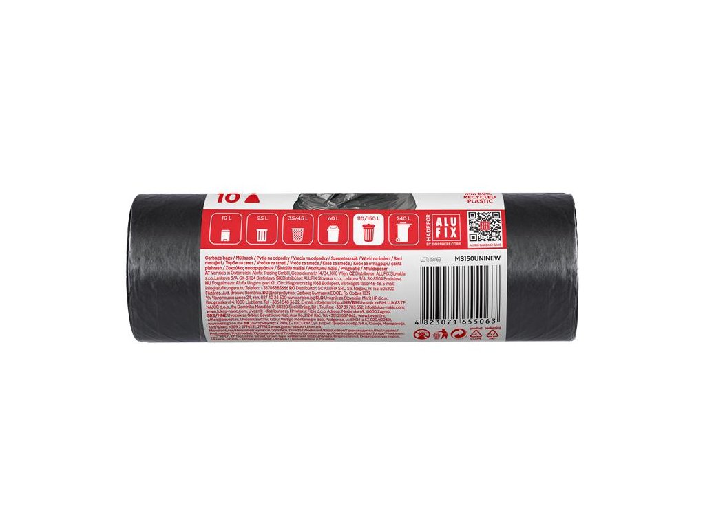 Vrecia na odpadky, 150 l, 10 ks, 80x105 cm, 35 µ, ALUFIX, čierna