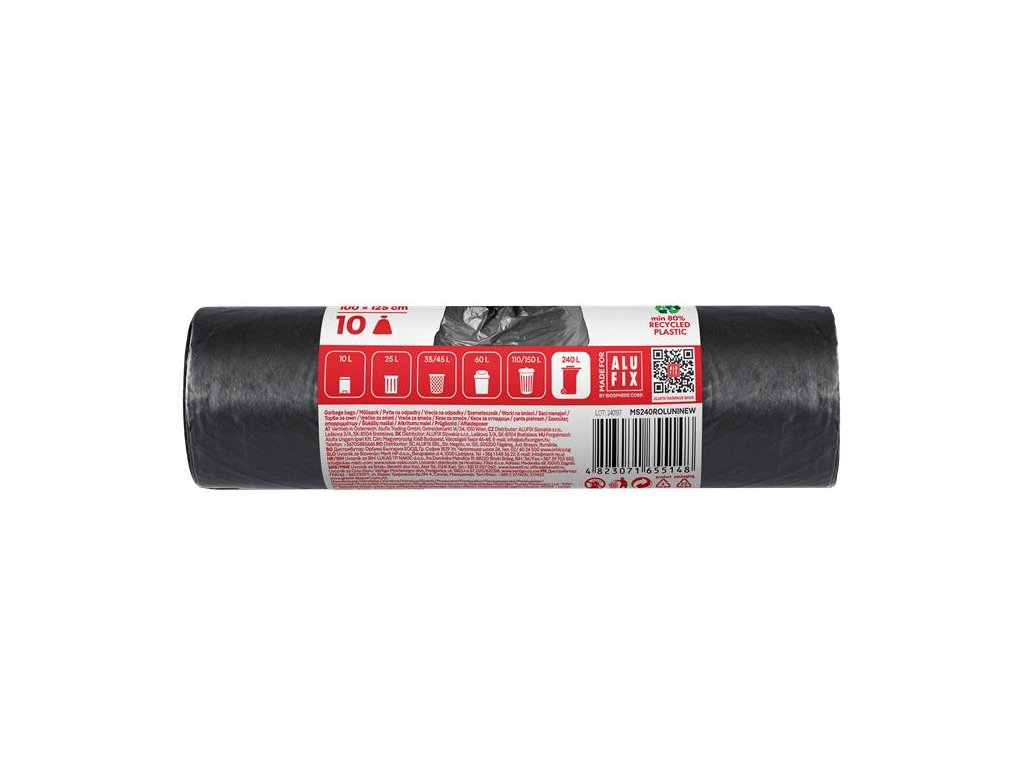 Všetky odpadové vrecia Alufix sú vyrobené z recyklovaného plastu. Keď sa rozhodnete pre odpadové vrecia Alufix, podporujete kolobeh zdrojov našej planéty.