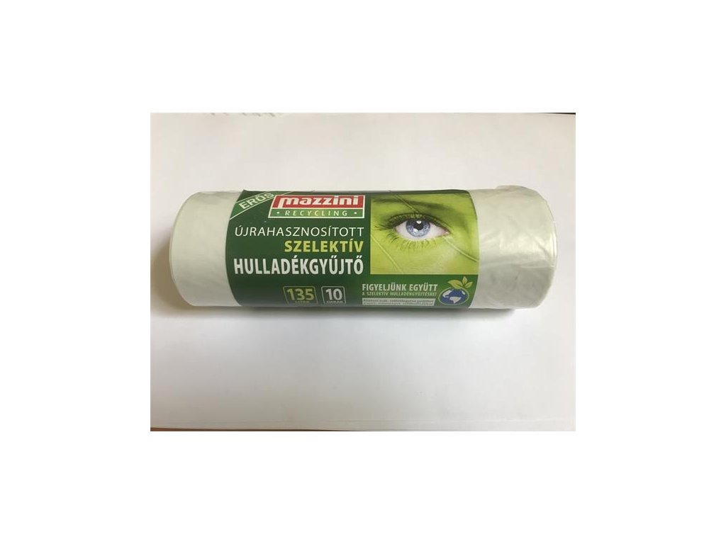 Vrecia na odpadky, na triedený odpad, recyklované, silné, 135 l, 10 ks, 70x110 cm, 25 µ, MAZZINI, priehľadná