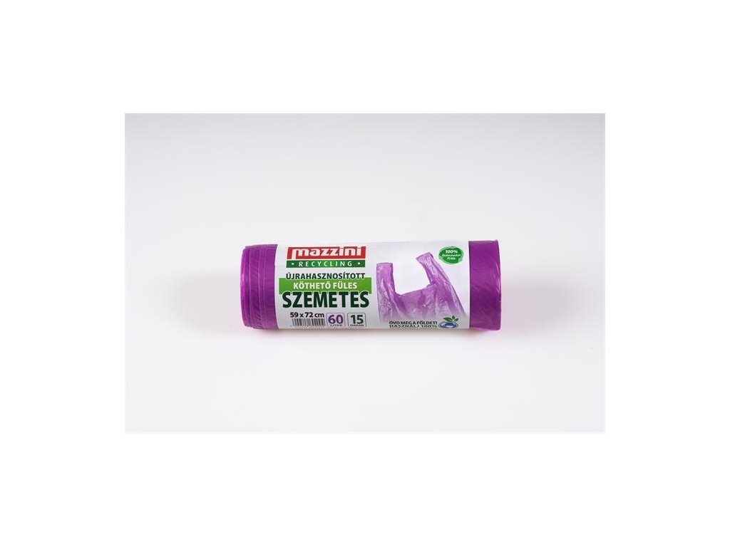 Vrecia na odpadky, recyklované, s uškom, 60 l, 15 ks, 59x72 cm, 13 µ, MAZZINI, fialová
