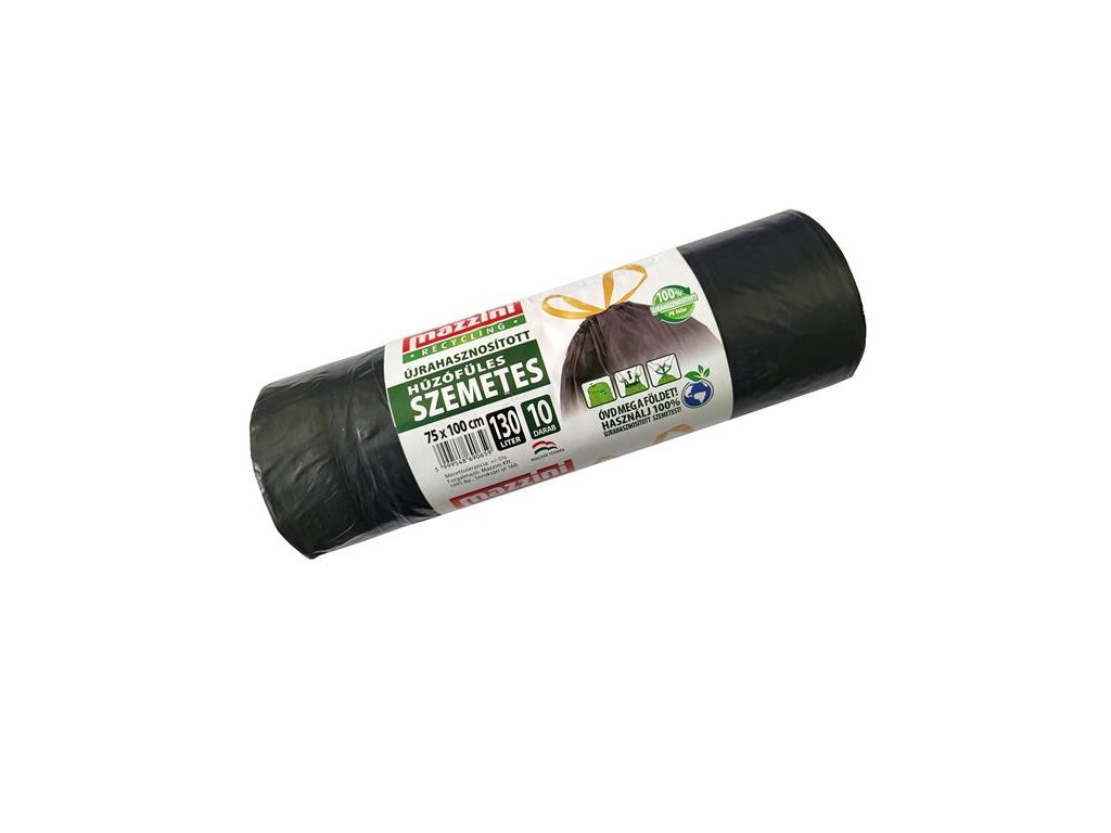 Vrecia na odpadky, recyklované, zaťahovacie, 130 l, 10 ks, 75x100 cm, 32 µ, MAZZINI, čierna