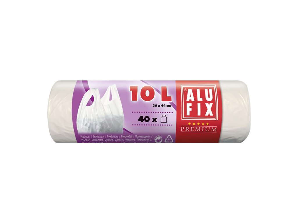 Vrecia na odpadky, s uškom, 10 l, 40 ks, 36x44 cm, 10 µ, ALUFIX, biela