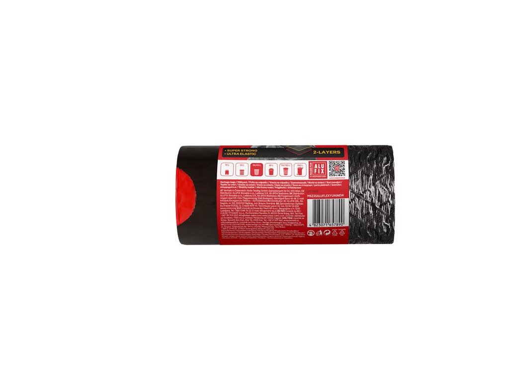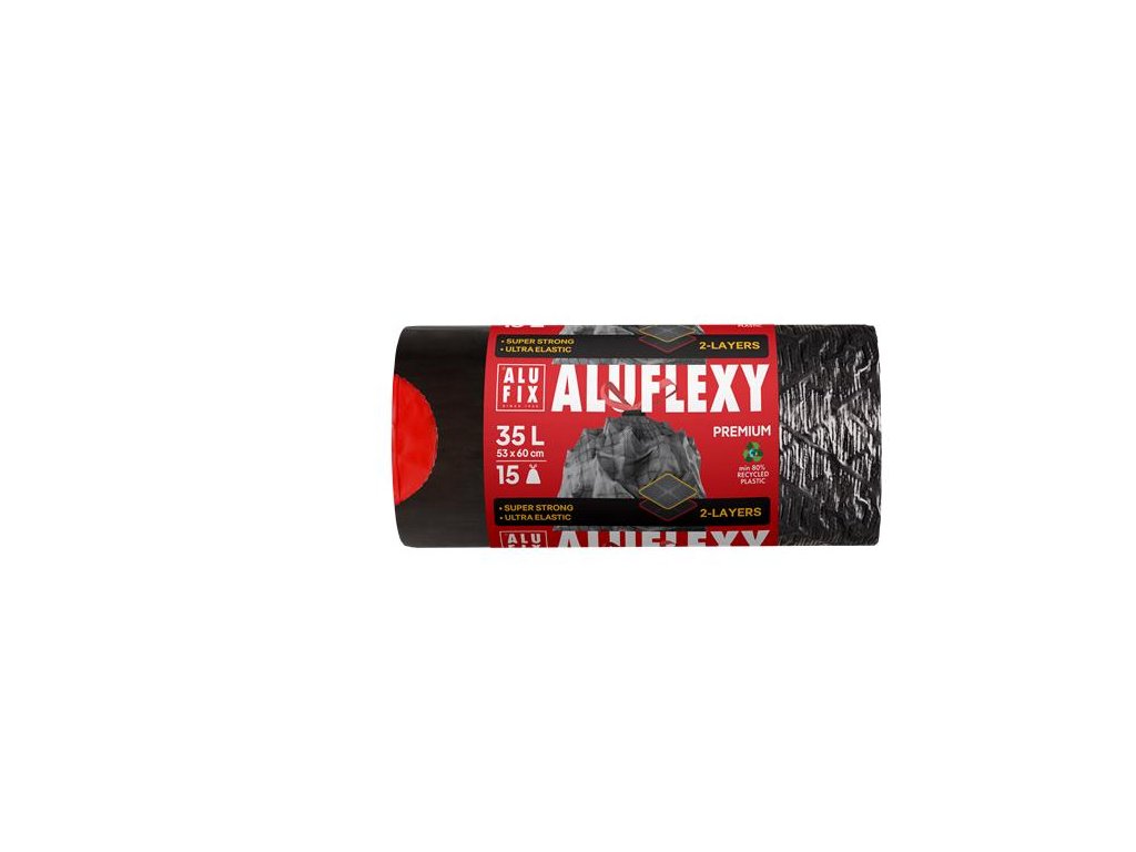 Vrecia na odpadky, zaťahovacie, 35 l, 15 ks, 53x60 cm, 28 µ, ALUFIX "Aluflexy", čierna