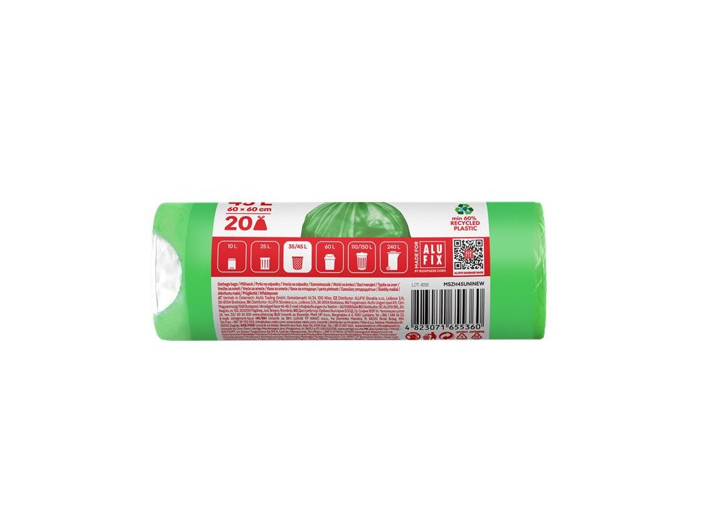 Vrecia na odpadky, zaťahovacie, 45 l, 20 ks, 60x60 cm, 14 µ, ALUFIX, "Prémium", zelená